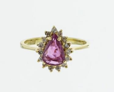 3112. Bague sertie d'un saphir rose taille poire (env. 0.7 ct) entouré...
