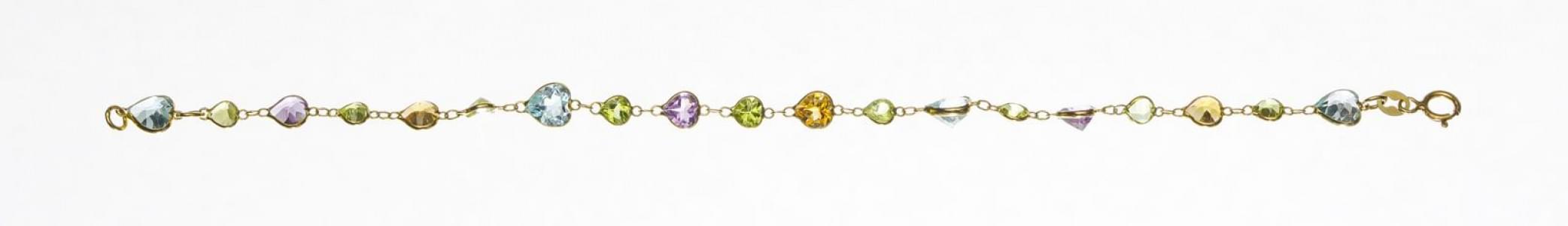 3119. Bracelet serti d'une ligne de citrines, améthystes, péridots et...