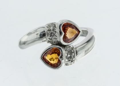 3138. Bague toi et moi sertie de deux saphirs orange taille cœur épaul...