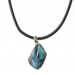3148. Collier retenant un pendentif serti d'une opale à fond noir reha...
