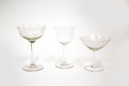 Verre et verre gravé à décor de fleurs. Provenance : Château fri...