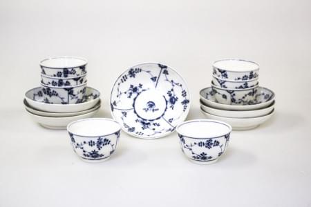 3199. Neuf tasses et neuf soucoupes à motifs de rameaux fleuris, Nyon