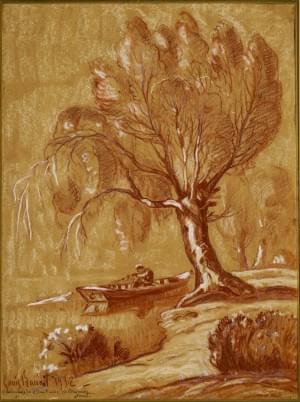 Arbre, huile sur pavatex, signée, 33x40 cm. Provenance : Château...