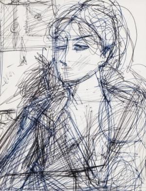 Portrait de femme, stylo bille sur papier, signé, 14x17 cm