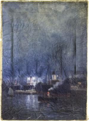 Les paquebots la nuit, huile sur toile, signée et datée 1895, 50...