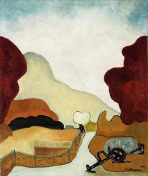 Paysage à la charrette, huile sur toile, signée, 30,5x53,5 cm