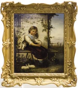 Jeune fille aux lapins et jeune garçon aux canards, paire d'huil...