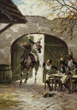 Cuirassiers français, huile sur toile, signée, 44x31 cm