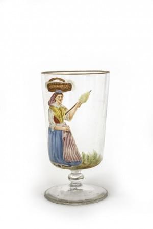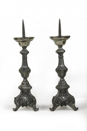 Emaillés jaune et bleu, H 17 et 10 cm. Provenance : Château frib...