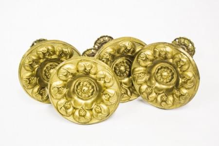 Métal doré à décor de têtes de cervidés. On joint un autre œuf....