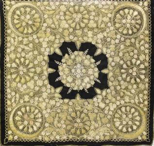 Riche décor de fils d'or et soie sur un fond de drap noir, 120x1...