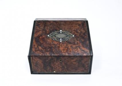 Placage de loupe de Thuya, marqueterie de laiton, nacre, 20x25x1...