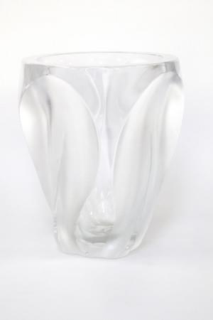 Verre moulé pressé et sablé de forme mouvementée, H 27 cm