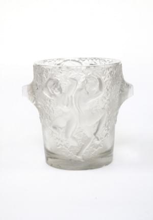 Verre moulé pressé à décor de personnages bacchiques en relief,...