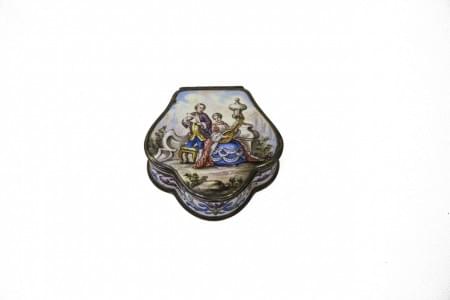 Métal émaillé à décor d'une scène galante, L 6 cm