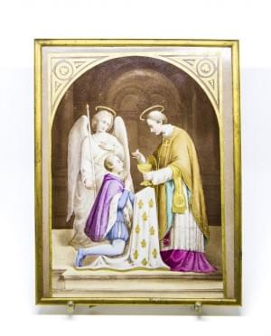 Scène de communion, peinture sur porcelaine, 16x12,5 cm