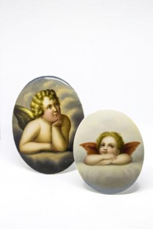 Putti, deux médaillons, émail sur porcelaine, 10 cm