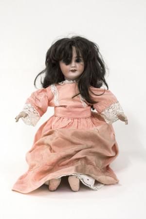 Yeux mobiles et bouche ouverte, corps en carton bouilli, H 55 cm