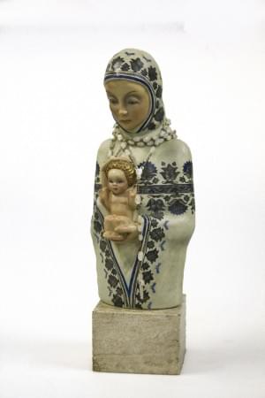 Vierge à l'enfant, porcelaine émaillée polychrome, H 29 cm