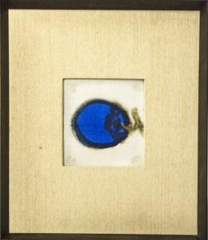 Résine à décor de visages sur fond bleu et noir, L 32 cm
