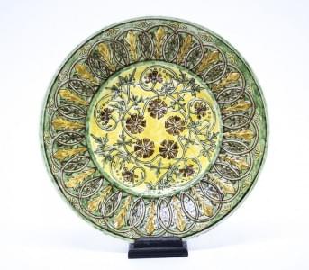 Assiette Art Nouveau à décor de rinceaux, céramique émaillée jau...