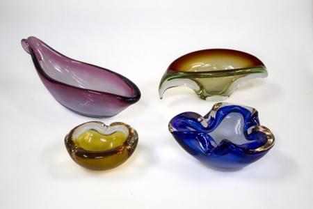Verre rose, orangé et bleu de Murano, L 12 à 32 cm