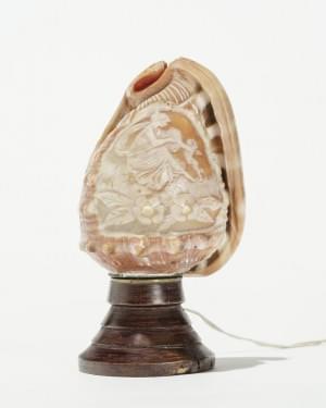 Coquillage gravé façon camée et monté en veilleuse, H 17 cm