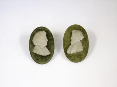 Verdi et Chopin, deux médaillons ovales, marbre sculpté en bas-r...