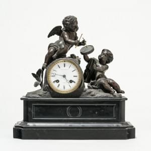 Bronze patiné, bronze doré, marbre noir, cadran émaillé blanc si...