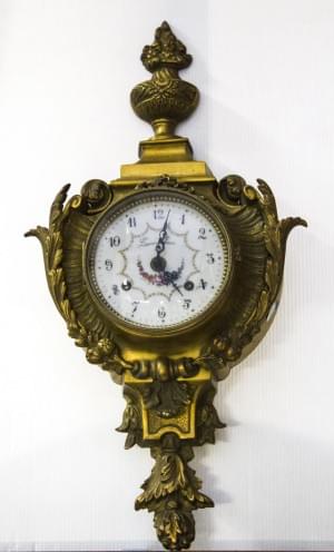 Bronze doré et cadran émaillé blanc à décor de fleurs, H 45 cm
