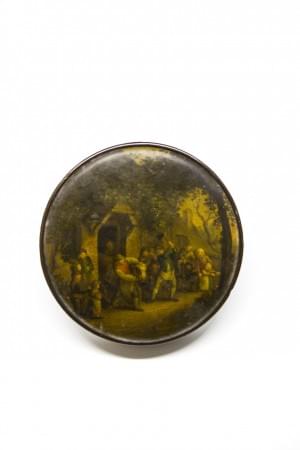 3749. Boîte ronde à décor d'une scène de village de l'école flamande