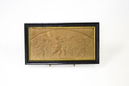 Putti musicien, bas-relief en terre cuite, 10x20 cm