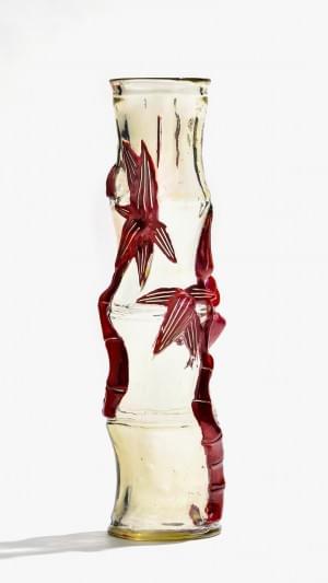 Verre blanc transparent à décor en relief de bourgeons émaillés...