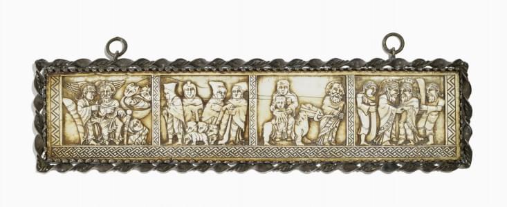 3781. Plaque de coffret figurant quatre scènes de la Vie du Christ dan...