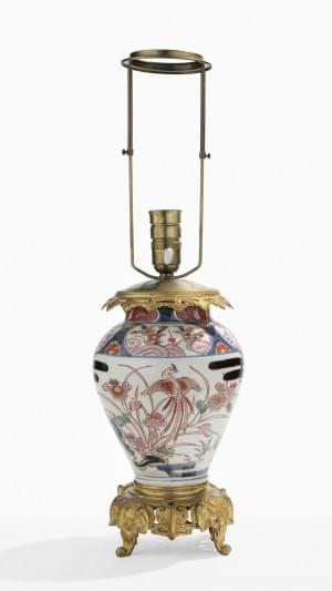 Porcelaine émaillée bleu, rouge et or, monture en bronze doré, H...