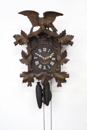 Bois laqué noir et or à décor peint de fleurs, cadran en émail b...
