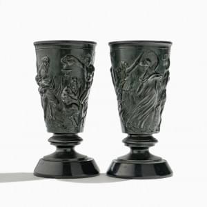 3791. Paire de gobelets sur pied dans le goût de Barbedienne, fin XIXe...