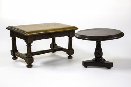 Piètement bois tourné noirci, papier lithographié, H 51 cm