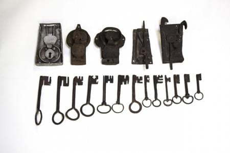 3802. Collection de cinq serrures et douze clés