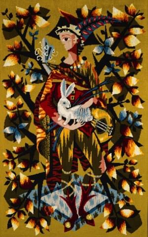 L'hallali, tapisserie en laine, signée et monogrammée JF pour Ju...