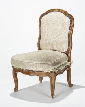 Bois naturel, tissu à fleurs. Provenance: Château fribourgeois