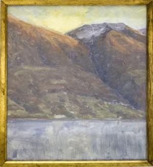Vue sur le lac, huile sur carton, datée 1914, 41x32 cm