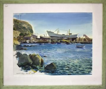 Bateaux au Port Calpe, aquarelle sur papier, datée 1964, 36x44 c...