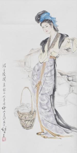 Portrait de femme, encre sur papier, montée en rouleau, signée,...