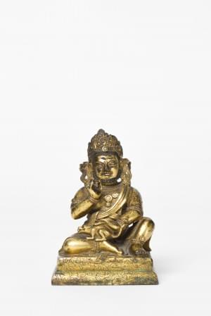 Figuré accroupi sur une base de lotus, bronze doré, H 17 cm