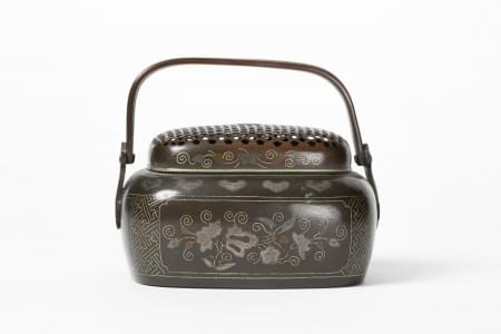 Bronze à patine brune à décor incrusté de fleurs, L 9,5 cm
