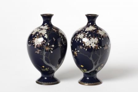 1074. Paire de vases en cloisonné, Japon, époque Meiji (1868-1912)