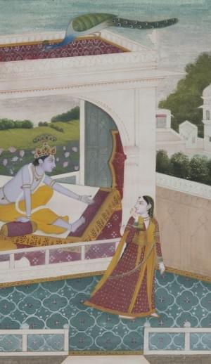 1094. Krishna qui regarde Radha et ses servantes, Inde