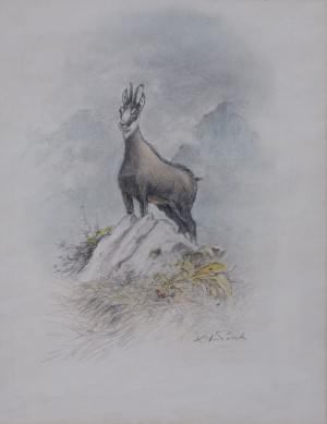 Chamois, craie et mine de plomb sur papier, signé, 31x24 cm