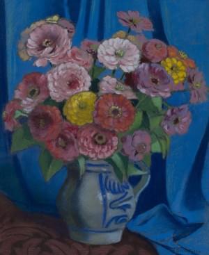 Bouquet de fleurs, pastel sur papier, signé, 60x49 cm